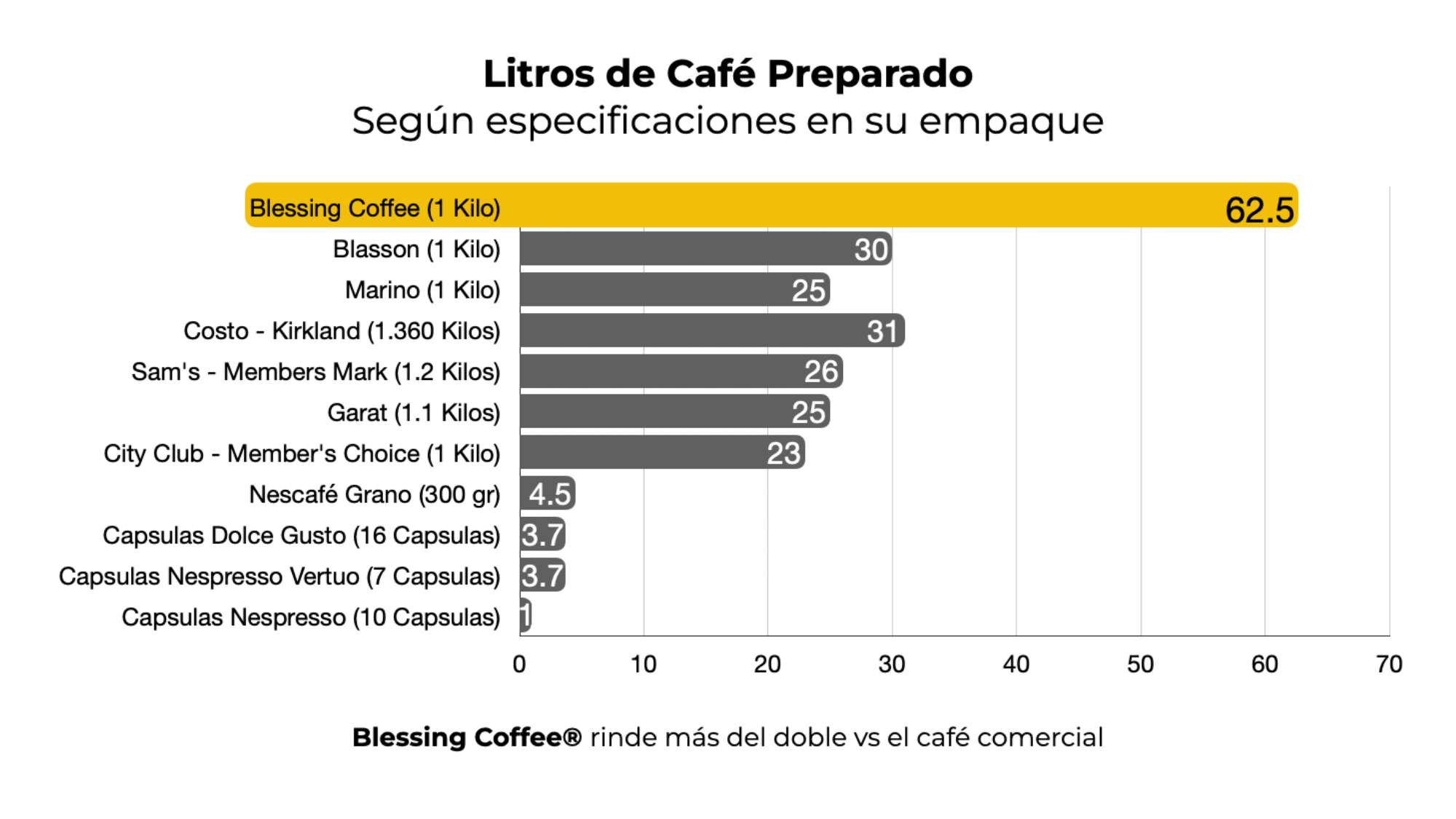 • Manejamos solo nuestra mezcla de café Blessing Coffee® que te da más del doble de litros preparados de café.